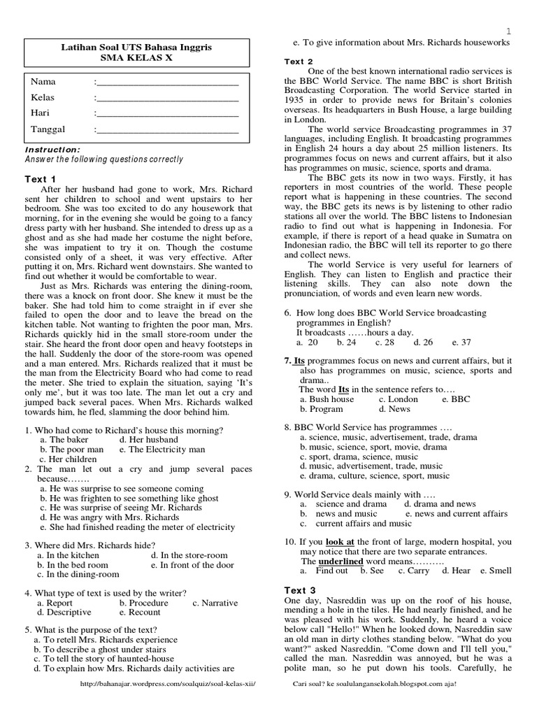 Latihan Soal Uts Bahasa Inggris Kelas 12 from www.ruangguru.com What are you doing here in the hospital? Oke, berikut dibawah ini.soal latihan bahasa baca juga: Latihan soal penilaian akhir semester satu (pas) kelas x kurikulum 2013 beserta jawabannya, berisikan materi bahasan mulai dari soal b.inggris tentang pronouns, expressions of giving compliment, expression of congrulation sampai soal tentang simple past tense.