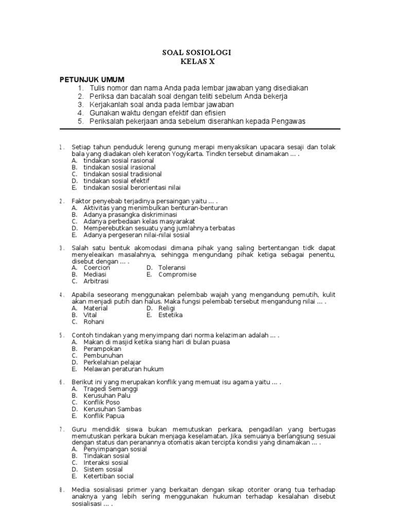 42+ Lebih Contoh Soal Sosiologi Kelas X. A soal ujian tengah semester mata pelajaran sosiologi a. Contoh soal sosiologi kelas x.